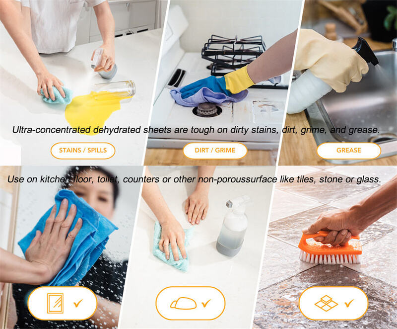 POWERFUL CLEANING ACTION: Whether it's the kitchen floor, toilet, or any other hard surface like tiles, stone or glass, our cleaning sheets have got you covered; just one sheet per 16 oz bottle is all you need for a clean home that smells lemony fresh.