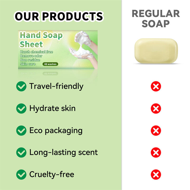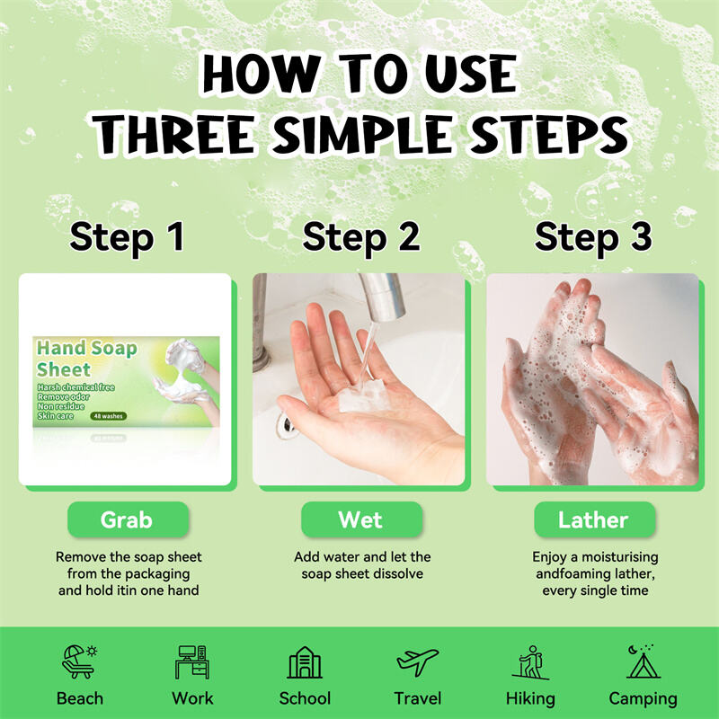 GENTLE CLEAN: Our hand soap sheets create a light foam that dissolves quickly for effective cleaning.They gently remove dirt while keeping hands soft and moisturized, preventing dryness even with frequent use.