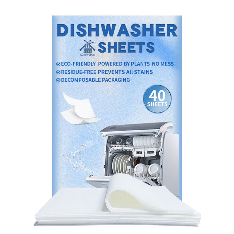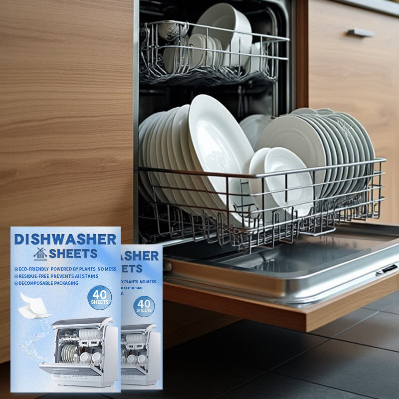 Dishwasher Detergent Sheets are Pre-Measured.Planet-Friendly Cleaning Power in a Compact Sheet.Simply Place One in the Dishwasher, and Let lt Dissolve-No More Plastic Pods or Messy Liquids!
